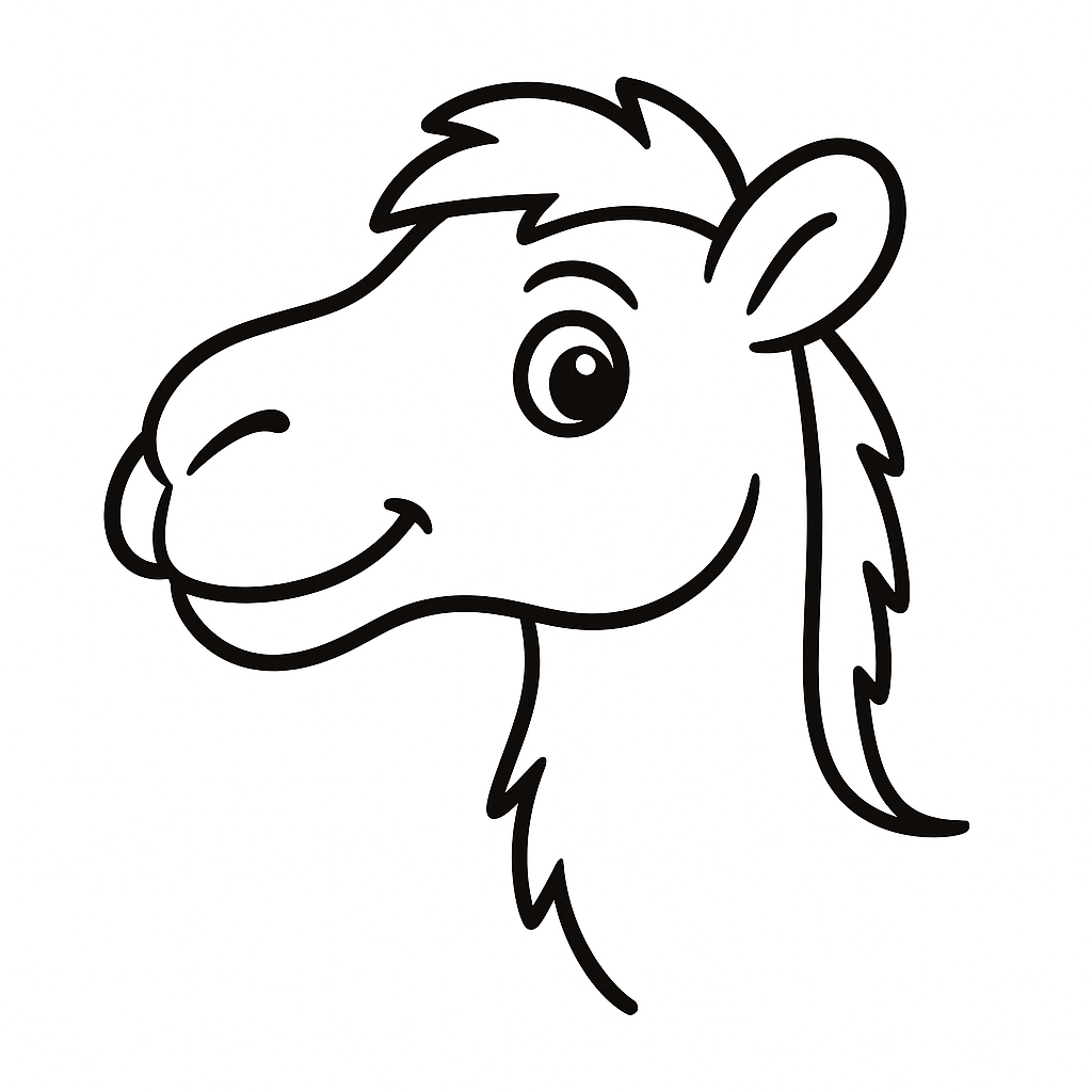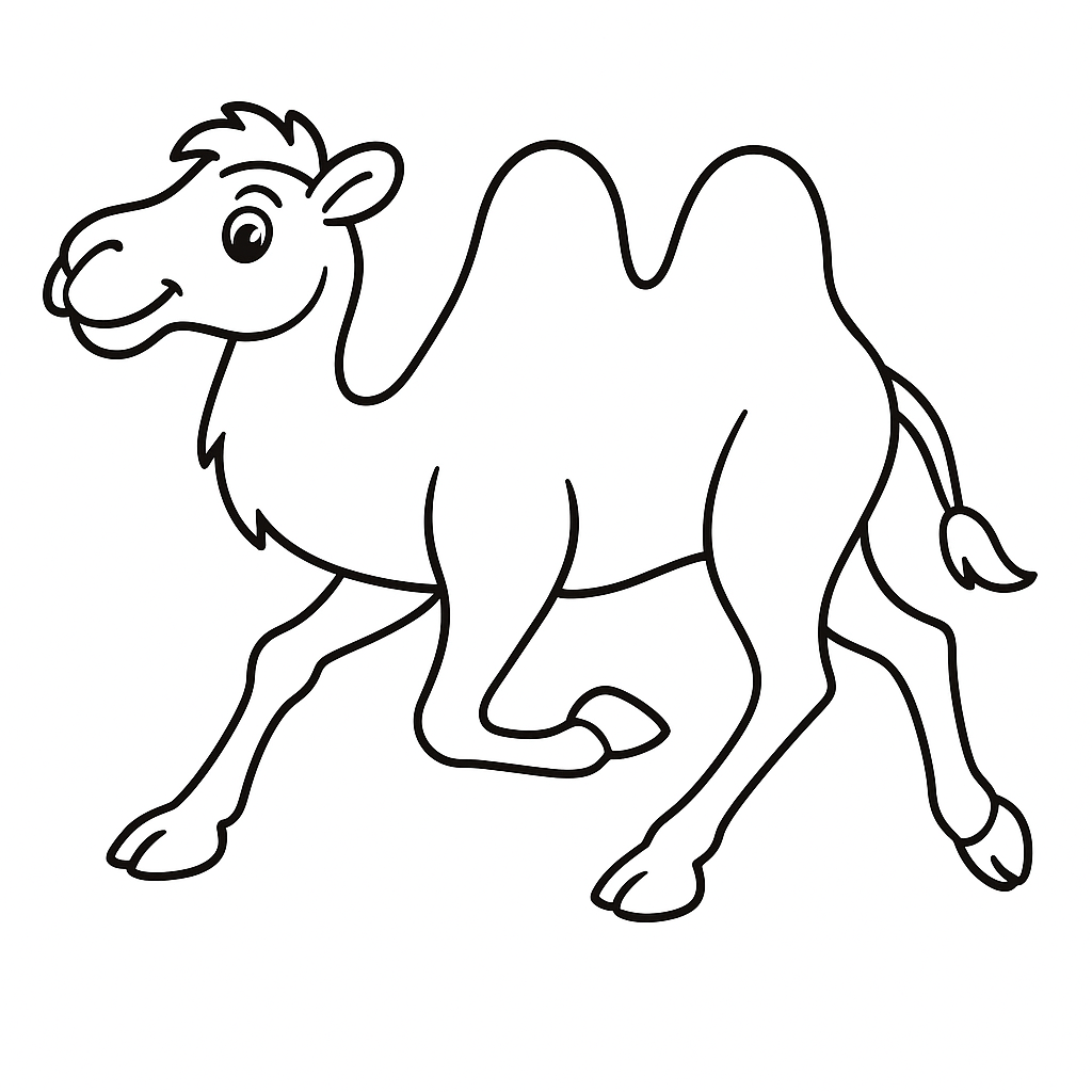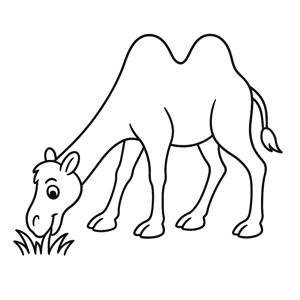 혹이 하나 혹은 두 개, 긴 다리와 목, 그리고 얼굴에 뾰족한 귀를 단순한 선으로 표현해 주세요.