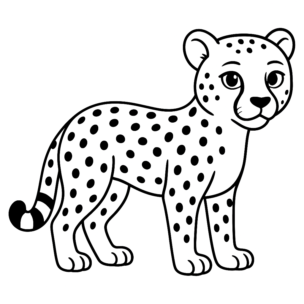 주황빛 몸에 검정 점무늬 색칠하고, 속도·운동 주제 활동이나 동물 운송 이야기에도 활용 가능합니다.