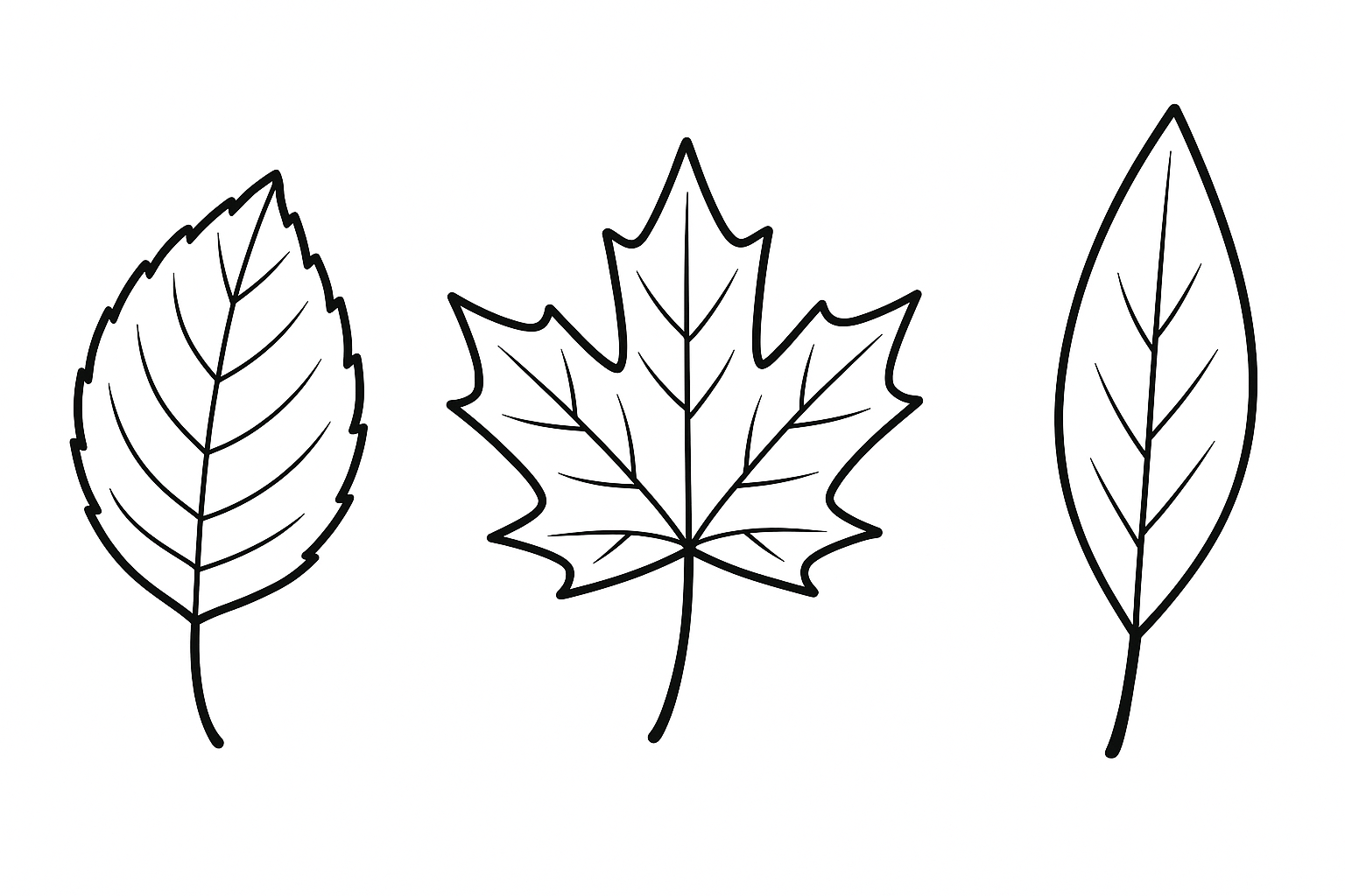 - 단풍잎, 은행잎, 떡갈나무잎 등 다양한 종류가 있어요. - 잎맥(잎의 줄무늬)이 표현되어 있어 색칠하면서 자연의 디테일을 배울 수 있어요. - 대칭적인 구조라서 따라 그리기 연습에도 좋아요. - 색칠 도안으로 활용하면 계절 표현 교육에도 딱이에요.