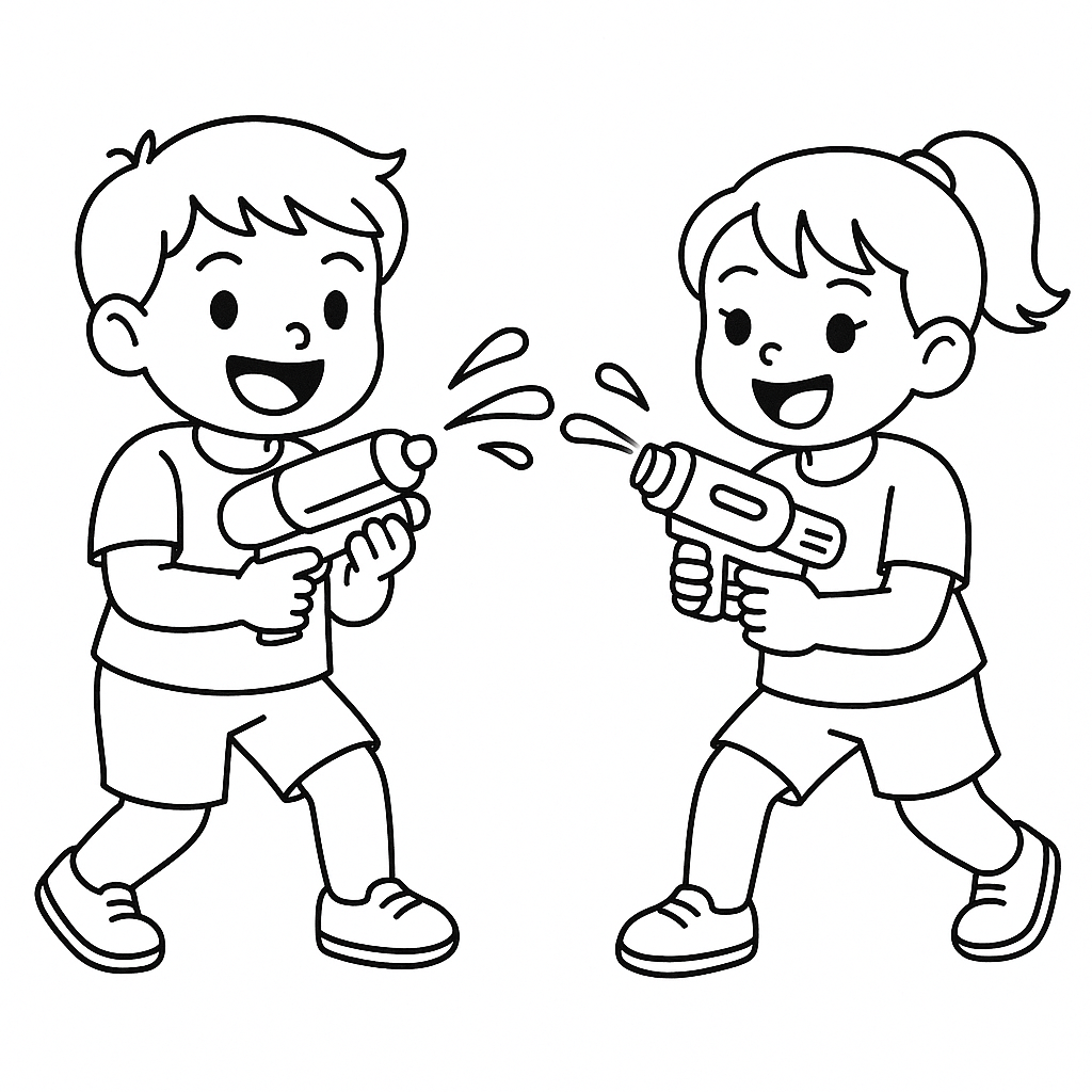 - **색칠 시간 놀이로 활용:** 아이에게 어떤 색으로 물총을 칠하고 싶은지 물어보며 자유롭게 상상하게 해보세요. - **여름 활동 주제 학습:** 여름에 할 수 있는 놀이에 대해 이야기 나누며 그림을 활용해요. - **친구들과의 역할극 그리기:** “이건 너고, 이건 네 친구야~” 하며 친구들과의 놀이 장면을 그려보는 것도 좋아요. - **배경 추가로 창의력 키우기:** 나무, 수영장, 해님 등 다양한 배경을 아이가 직접 그려보게 하면 창의력도 쑥쑥!
